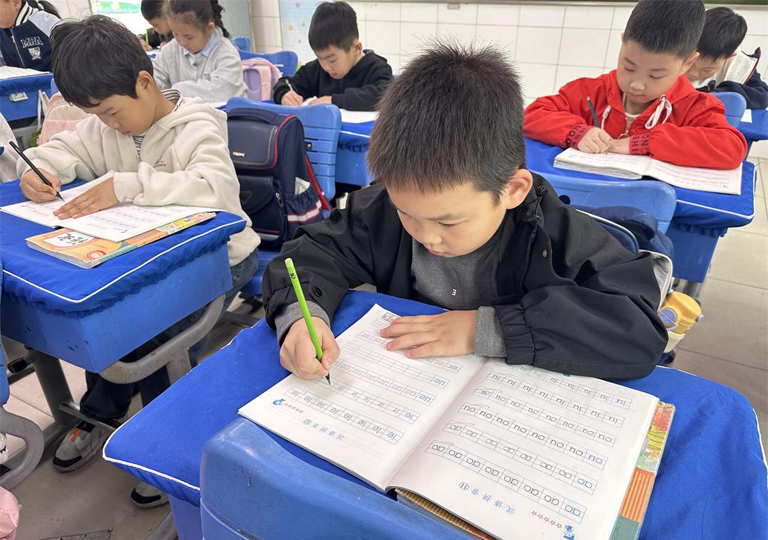 “头正、肩平、背直、足安”,看,这群小小书法家正在写字呢。他们掌握了正确的握笔姿势,知道了“一拳一尺一寸”,在一笔一画中感受汉字的魅力。